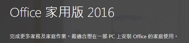 Word 2016、Excel 2016、PowerPoint 2016 和 OneNote 2016。